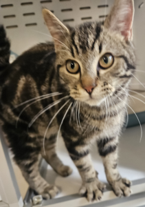 Mâle né en Mai 2024. RICO est arrivé avec ses 3 frères. Il faisait parti d’un groupe de chats nourris dehors, menacés par un