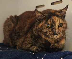 Femelle, estimation d’âge à venir. Écaille est arrivée avec deux autres chats suite à l’entrée en Ehpad de sa propriétaire.Écaille est calme et posée, elle