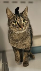 Femelle estimée née en janvier 2025. Isabelle faisait parti d’un groupe de chats qui vivait dehors, veillée par un nourrisseur, jusqu’à ce que la