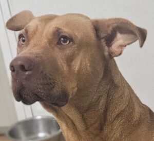 Femelle croisée dogue estimée née en Avril 2021. Camélia est arrivée dans le cadre de la fourrière. C’est une chienne calme et posée,