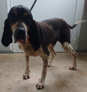 Femelle estimée née en juin 2024. Un peu sur la réserve, Pastèque n’a sûrement jamais connu une vie de famille. Une fois adoptée, elle se
