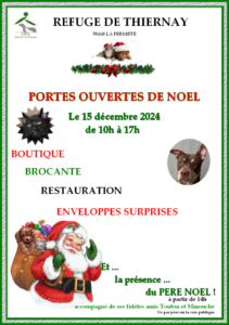 Le refuge organise ses traditionnelles portes ouvertes de Noël ! Retrouvez-nous le dimanche 15 décembre 2024 de 10h00 à 17h00. Au menu cette