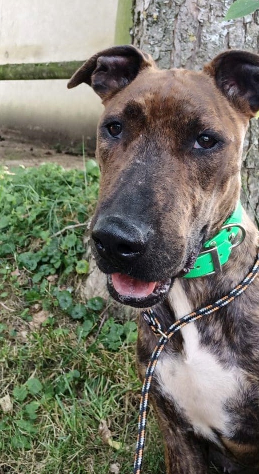 Femelle croisée bull terrier née en Octobre 2021.